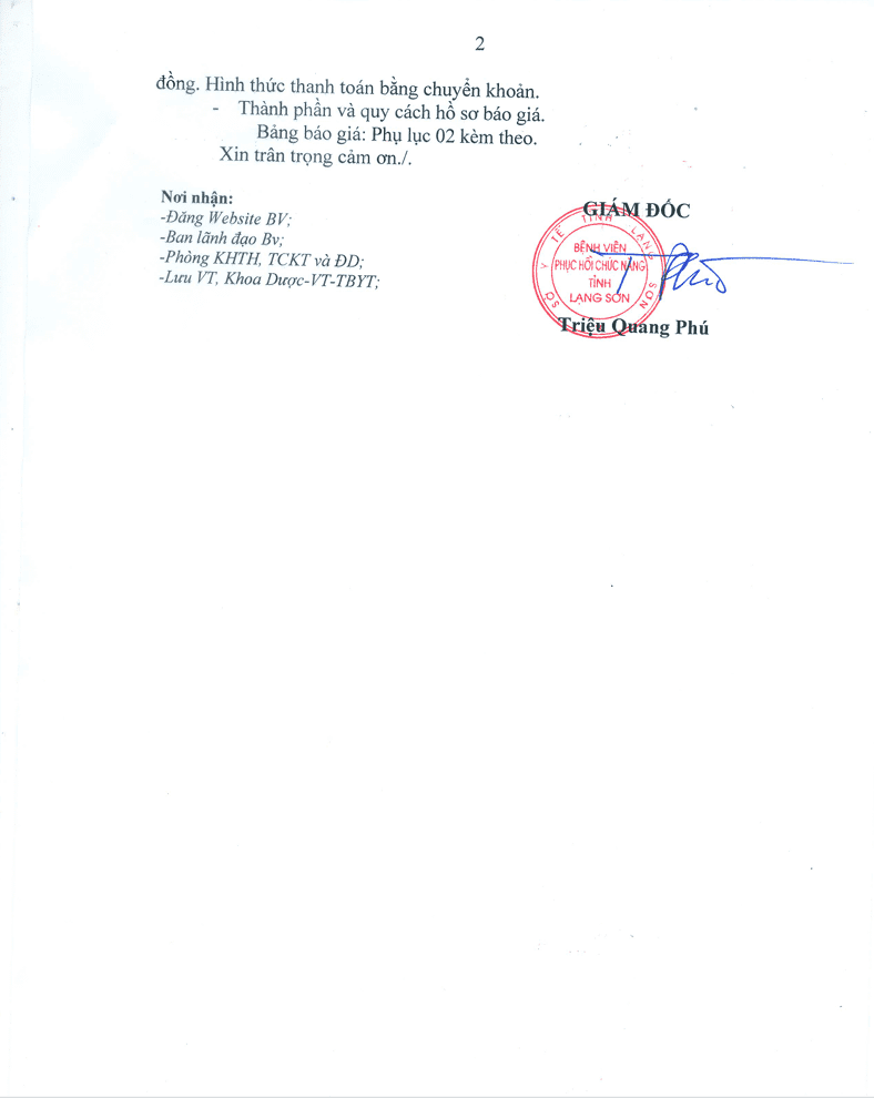 Thư mời cung cấp báo giá Dịch vụ tư vấn đấu thầu Gói thầu mua 12 thuốc Generic cho Bệnh viện Phục hồi chức năng tỉnh Lạng Sơn